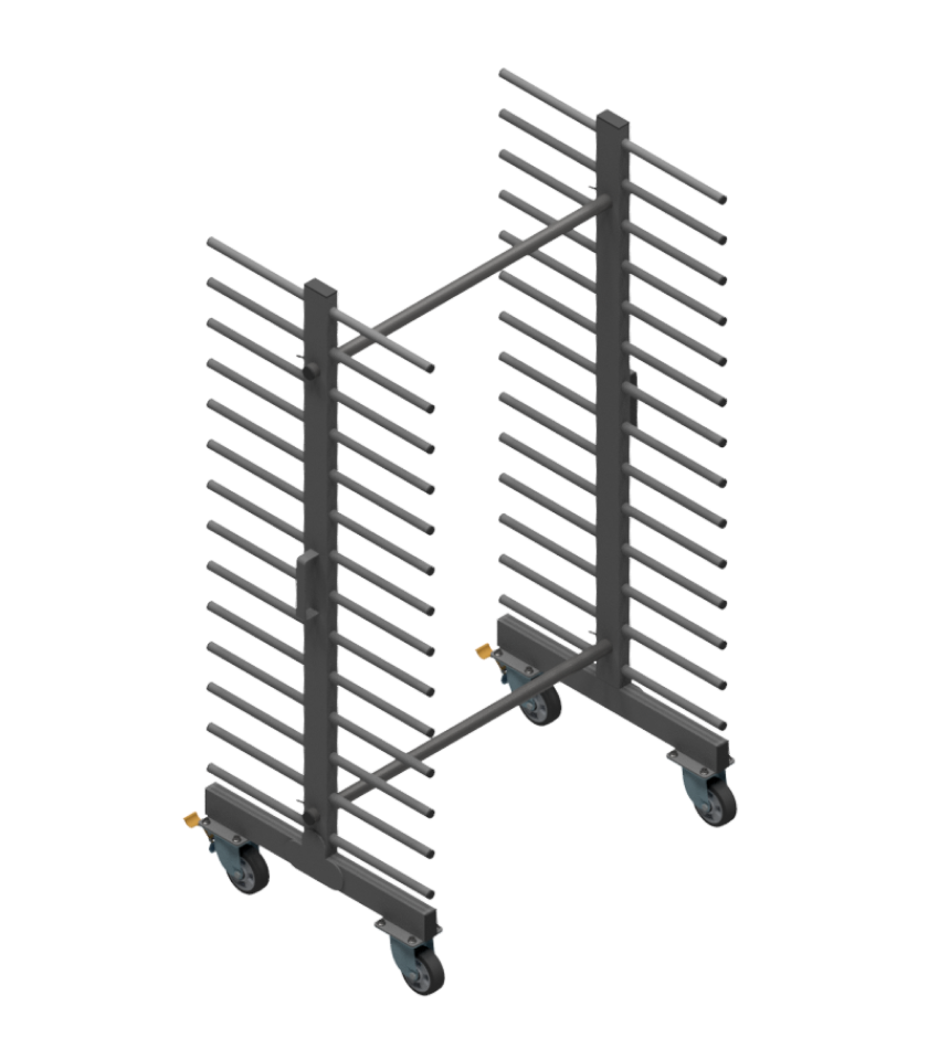 Służy do odkładania pomalowanych lub polakierowanych elementów, może również służyć jako wózek transportowy lub regał.
